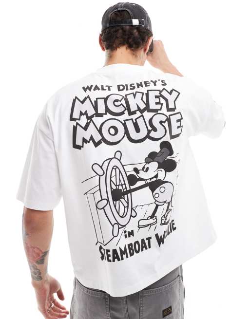 ASOS DESIGN – Disney – Vit t-shirt i oversize med boxig passform och licensierat "Musse Pigg som Ångbåtskalle"-tryck