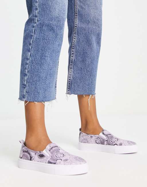 ASOS DESIGN – Dotty – Syrénlila tygskor i dra på-stil med himmelskt mönster