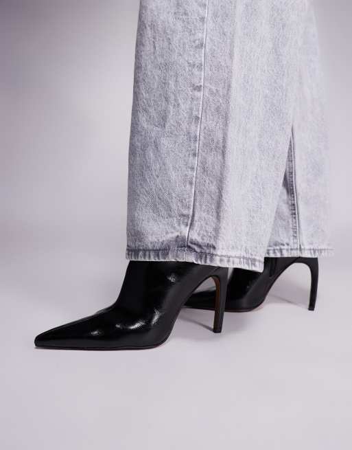 ASOS DESIGN – Ebony – Svarta ankelboots med hög klack och spetsig tå