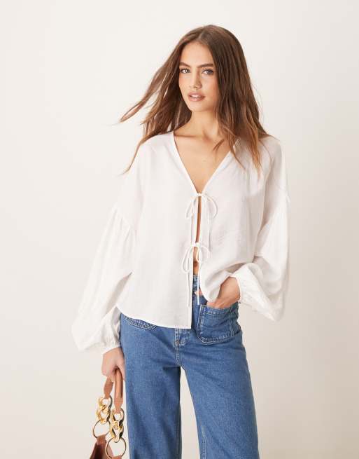 ASOS DESIGN – Elfenbensvit blus med knytning framtill