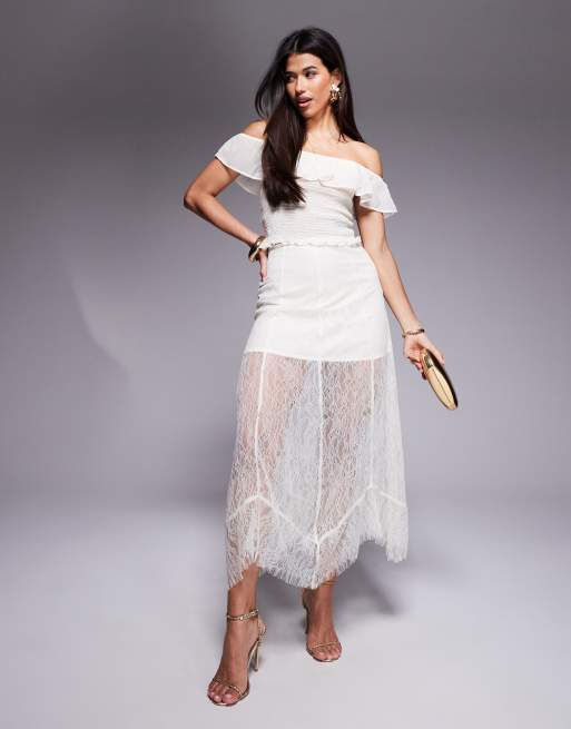 ASOS DESIGN – Elfenbensvit maxikjol i spets med foder i minilängd