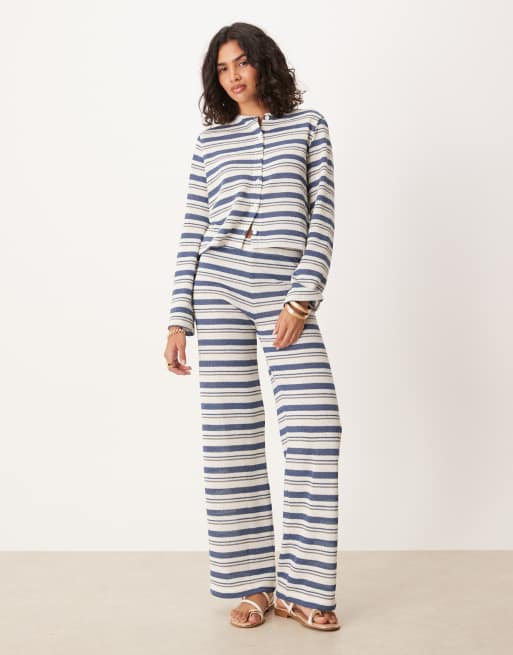 ASOS DESIGN – Elfenbensvitt, panelsytt, randigt set med topp med långa ärmar och byxor