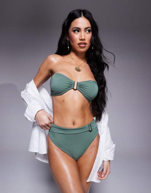 ASOS DESIGN – Ella – Kakifärgad bikini med guldfärgad detalj