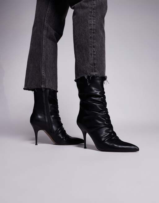 ASOS DESIGN – Erin – Svarta ankelboots med hög klack och rysch