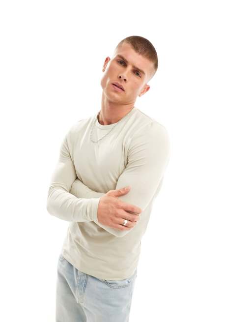 ASOS DESIGN – Essential – Beige t-shirt i muscle fit med långa ärmar