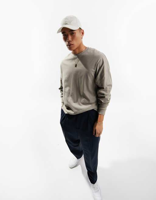 ASOS DESIGN – Essential – Beige t-shirt i oversize med långa ärmar