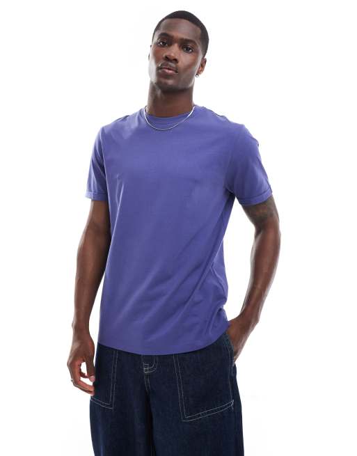 ASOS DESIGN – Essential – Blå t-shirt med rund halsringning och uppvikt ärm