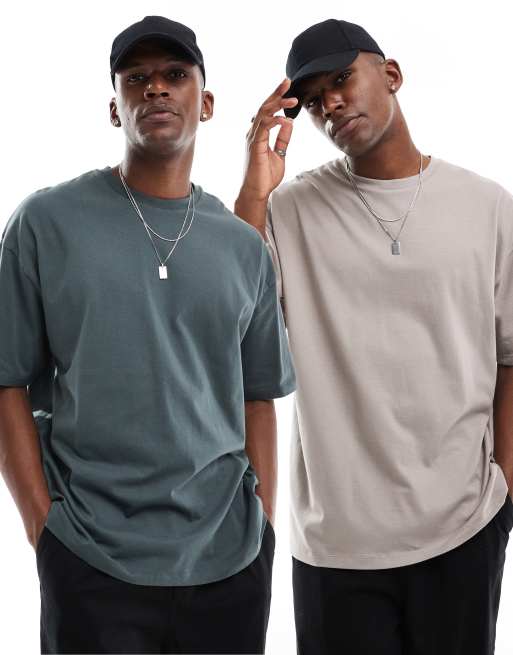 ASOS DESIGN – Essential – Stenfärgad och mörkgrön t-shirt i oversize, 2-pack