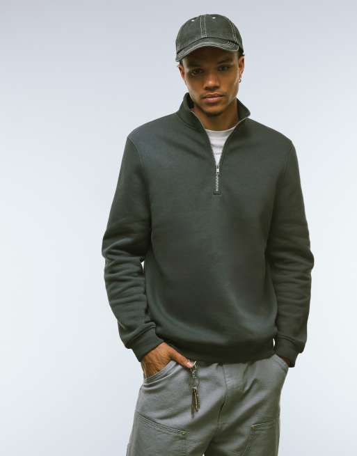 ASOS DESIGN – Essentials – Blekgrå sweatshirt med kvartslång dragkedja