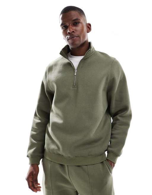 ASOS DESIGN – Essentials – Kakifärgad sweatshirt med kvartslång dragkedja