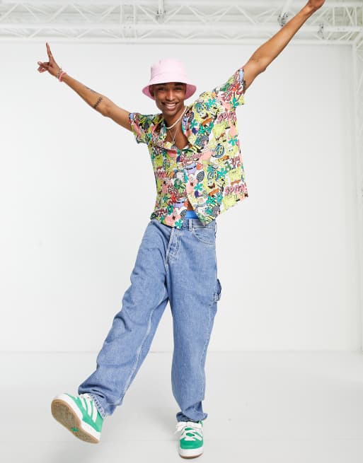 ASOS DESIGN – Färgglad avslappnad skjorta med platt krage och Svampbob-tryck