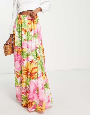 ASOS DESIGN – Färgglad, blommig, mjuk, hellång maxikjol