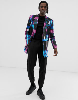ASOS DESIGN – Färgstark, rutig, oversize kostym med ficka