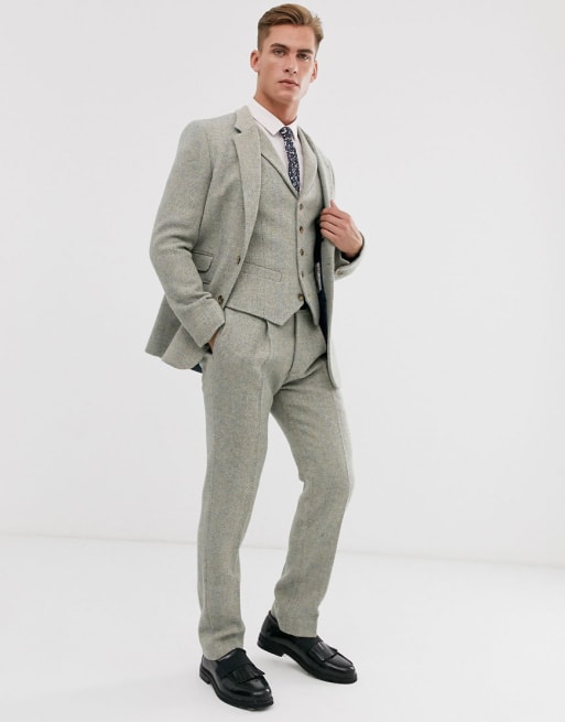 ASOS DESIGN – Fiskbensmönstrad kavaj i Harris-tweed med 100 % ull och smal passform
