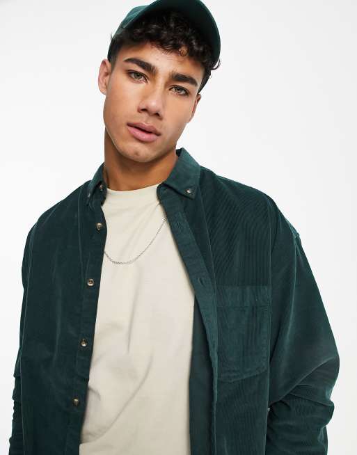 ASOS DESIGN – Flaskgrön manchesterskjorta i oversize och 90-talsstil