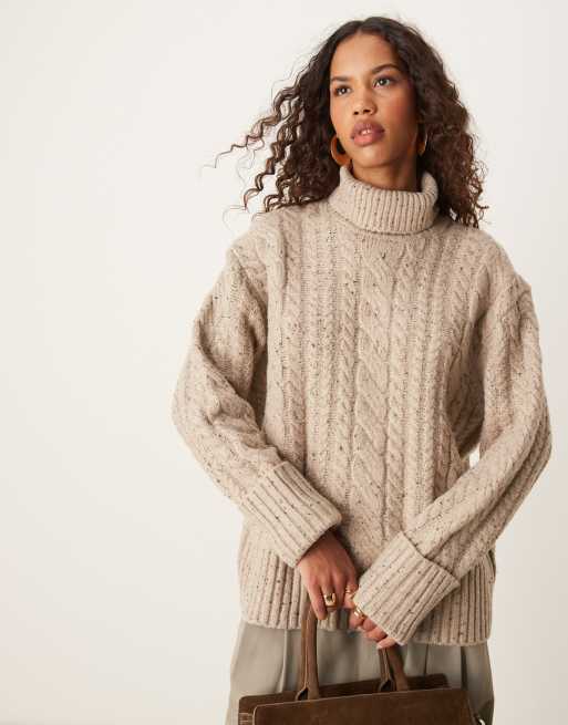 ASOS DESIGN – Flätstickad tröja i knottrigt garn med hög krage