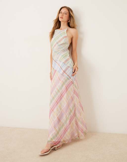 ASOS DESIGN – Flerfärgad, rutig midiklänning med dekorativ söm och brottarringning