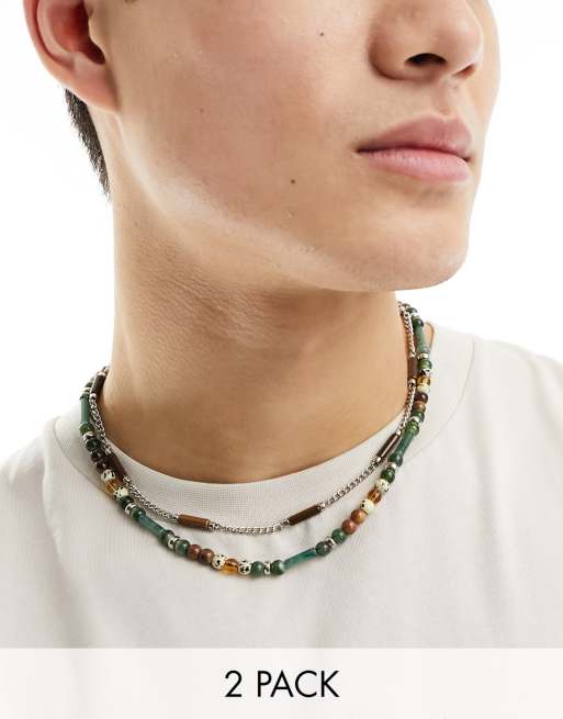 ASOS DESIGN – Flerfärgade pärlhalsband, 2-pack