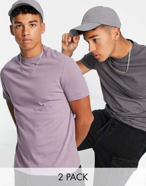 ASOS DESIGN – Flerfärgade T-shirtar med rund halsringning, 2-pack – MULTI