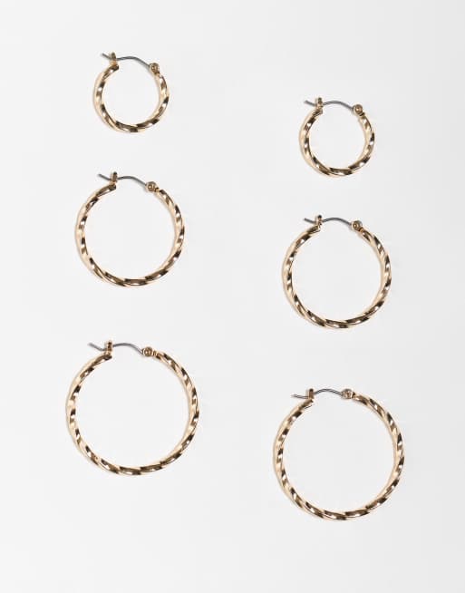 ASOS DESIGN – Flerpack med 3 guldfärgade snurrade creoler