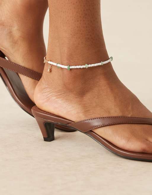 ASOS DESIGN – Fotlänk med gröna halvädelstensflisor och vita pärlor