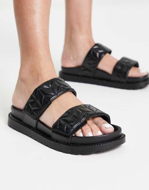 ASOS DESIGN – Frequency – Svarta, platta sandaler med två remmar