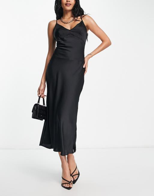 ASOS DESIGN – Fylligare Byst – Svart slipklänning i maxilängd med hög övre kupkant av satin