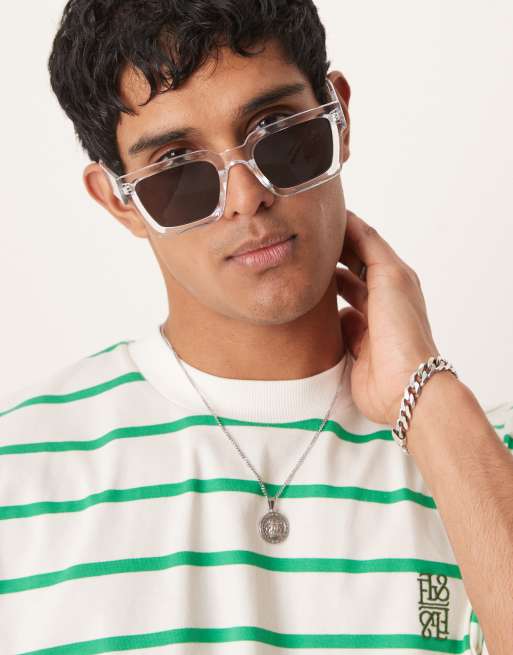 ASOS DESIGN – Genomskinliga, falsade, fyrkantiga solglasögon med rökfärgade glas