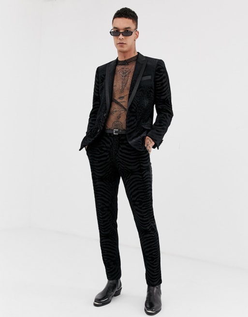 ASOS DESIGN – Glittrig, svart smoking i leopardmönster med extra smal passform
