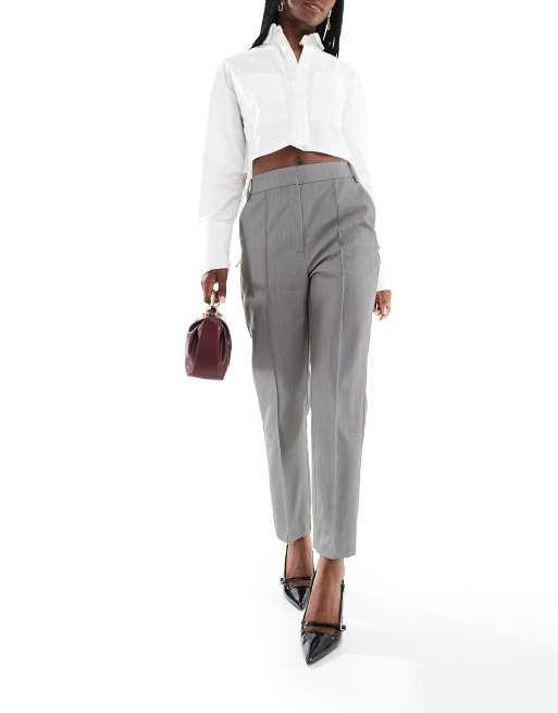 ASOS DESIGN – Grå, ankellånga byxor med figursydd design och hög midja