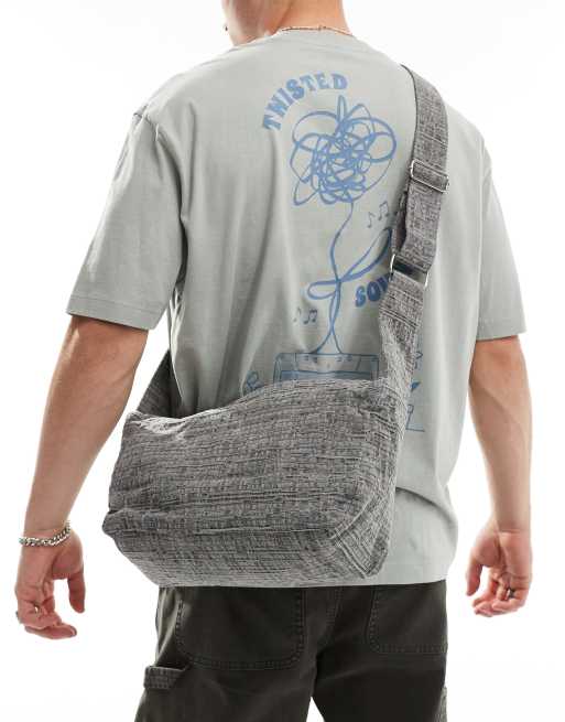ASOS DESIGN – Grå axelremsväska i mjuk bomull