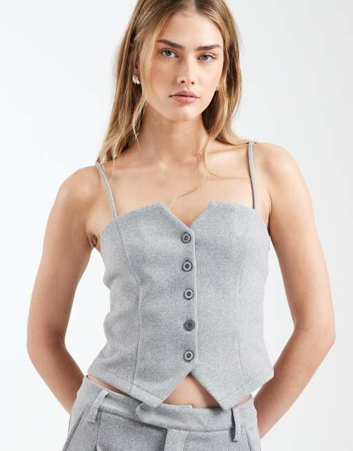 ASOS DESIGN – Grå, borstad kostymväst med knappar och smala axelband, del av set