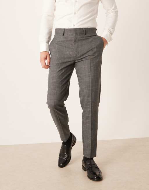 ASOS DESIGN – Grå, crosshatch-mönstrade finbyxor med avsmalnande passform