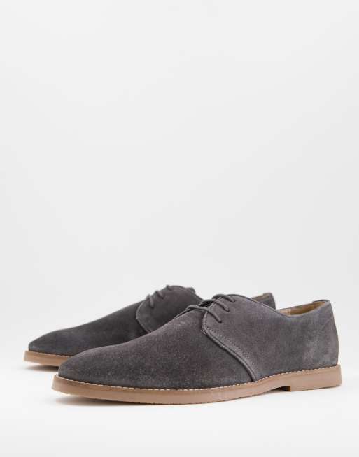 ASOS DESIGN – Grå derbyskor i mocka med kantsöm