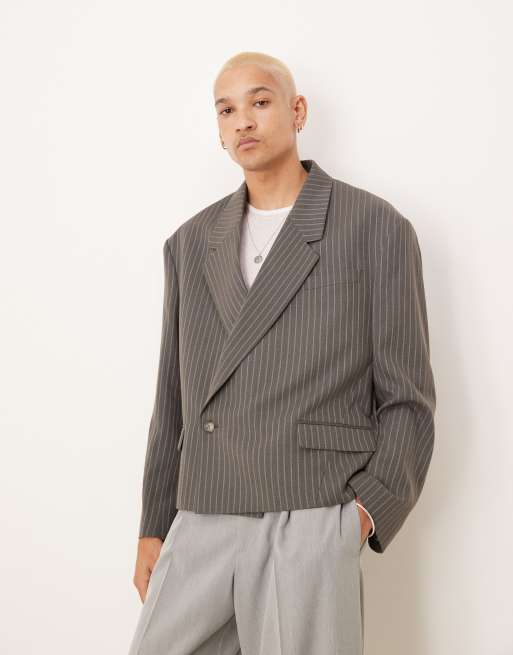 ASOS DESIGN – Grå, dubbelknäppt kavaj i extra oversize och kort modell med kritstrecksränder
