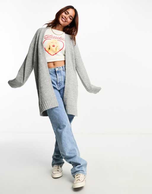 ASOS DESIGN – Grå, grov kofta utan knäppning
