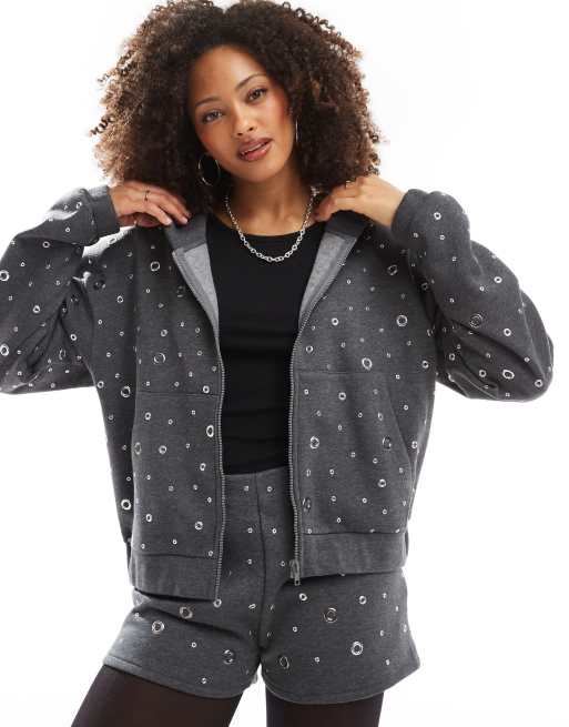 ASOS DESIGN – Grå huvtröja med dragkedja och öljett
