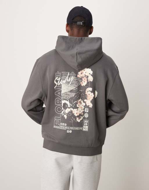 ASOS DESIGN – Grå huvtröja med souvenirtryck