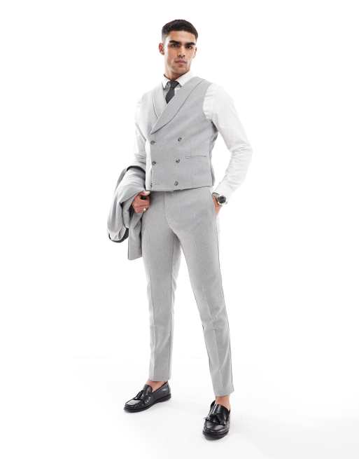 ASOS DESIGN – Grå kostymbyxor i ull och extra smal passform
