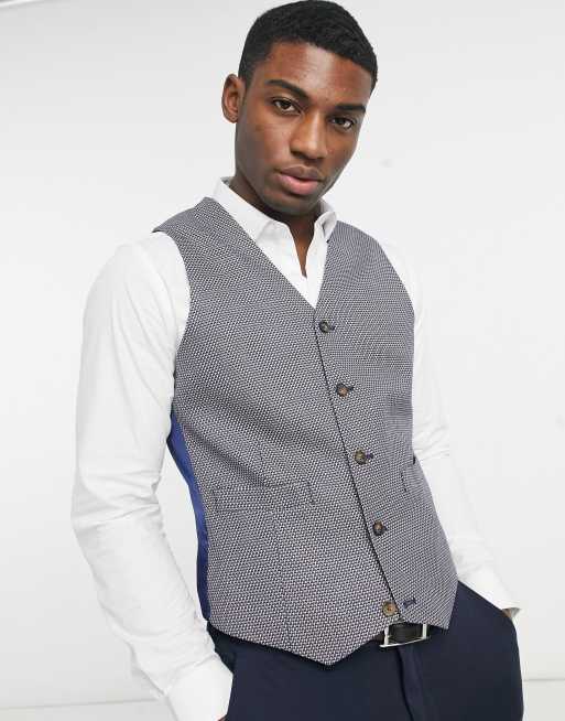 ASOS DESIGN – Grå kostymväst med smal passform och litet rutmönster