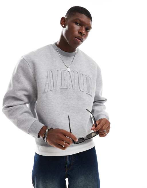 ASOS DESIGN – Grå, kraftig sweatshirt i boxig passform med präglat tryck av scubaliknande tyg