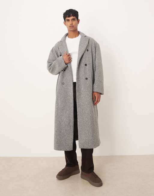 ASOS DESIGN – Grå, lång kappa i oversize och yllelook av bouclé