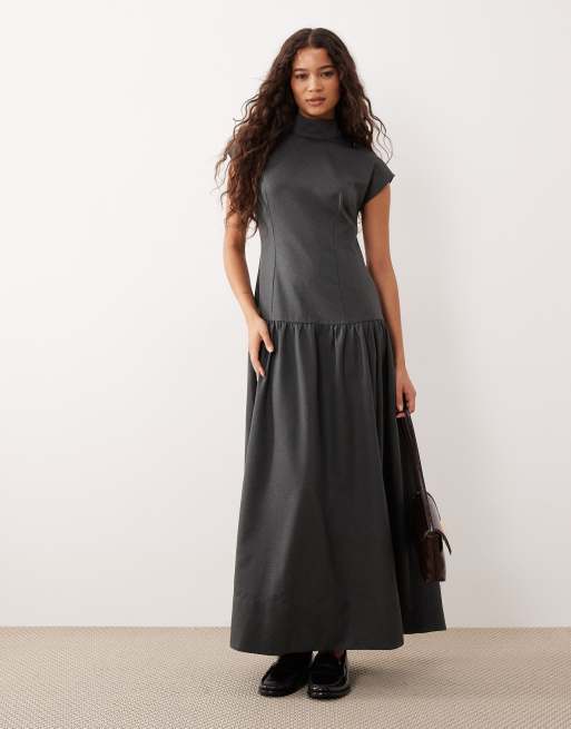 ASOS DESIGN – Grå maxiklänning med hög krage och sänkt midja