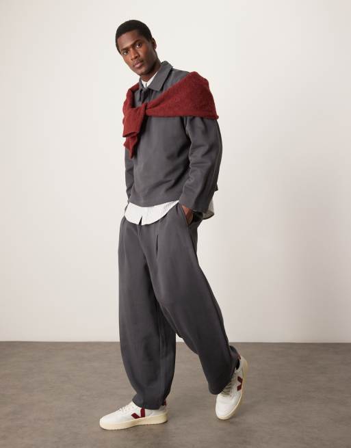 ASOS DESIGN – Grå mjukisbyxor i oversize med ballongben, del av set