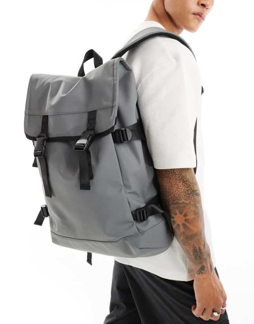 ASOS DESIGN – Grå och svart, gummerad ryggsäck med dubbla remmar