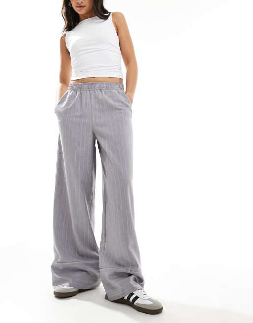 ASOS DESIGN – Grå, randiga byxor med resårmidja