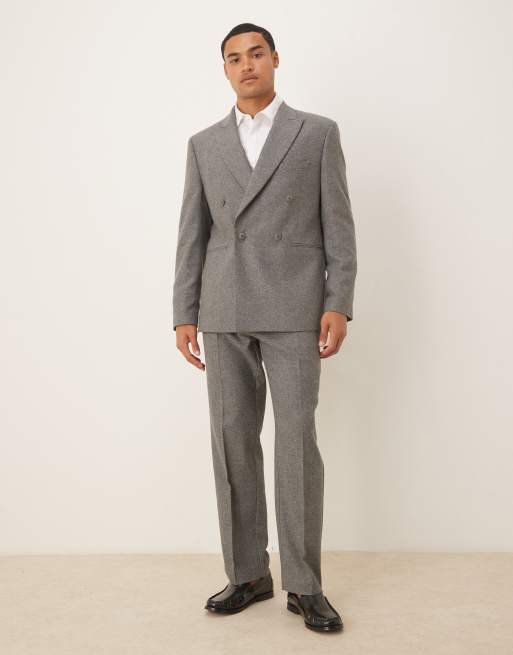 ASOS DESIGN – Grå, regular, dubbelknäppt kostym i ylletyg