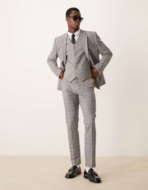 ASOS DESIGN – Grå, rutig linnekostym med extra smal passform