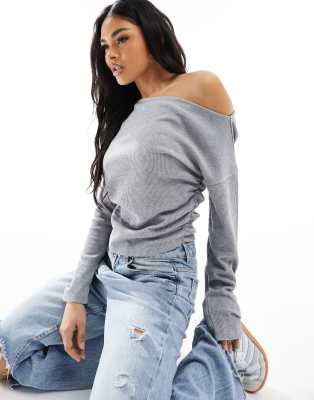 ASOS DESIGN – Grå, slouchy topp med våffeltextur