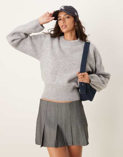 ASOS DESIGN – Grå, stickad tröja med skulpterad design, rund halsringning, strukturerade ärmar och ribbad nederkant